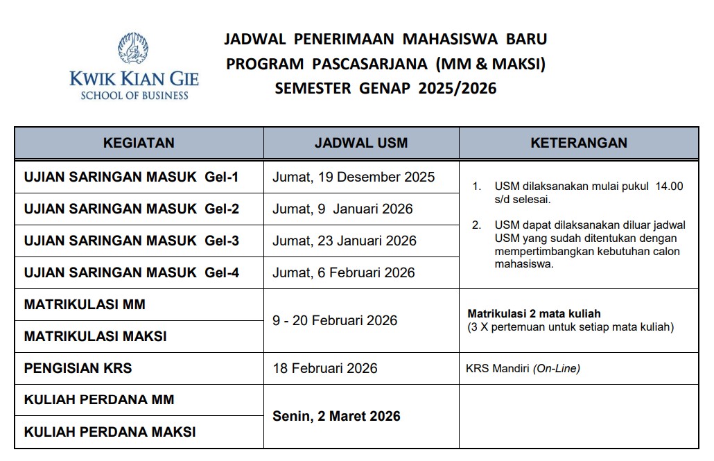 Untuk informasi pendaftaran, silakan menghubungi https://pmb.kwikkiangie.ac.id/